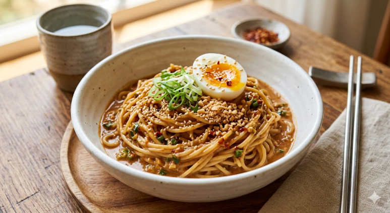 - 기호에 따라 식초를 살짝 추가하면 감칠맛이 살아납니다. 면이 뻑뻑할 경우 물을 약간 섞어 비벼주세요.