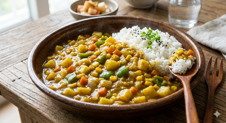 ※ 고기가 들어가지 않아 일반 카레보다 칼로리가 낮고 식이섬유가 풍부하여 소화가 잘되는 건강식입니다.