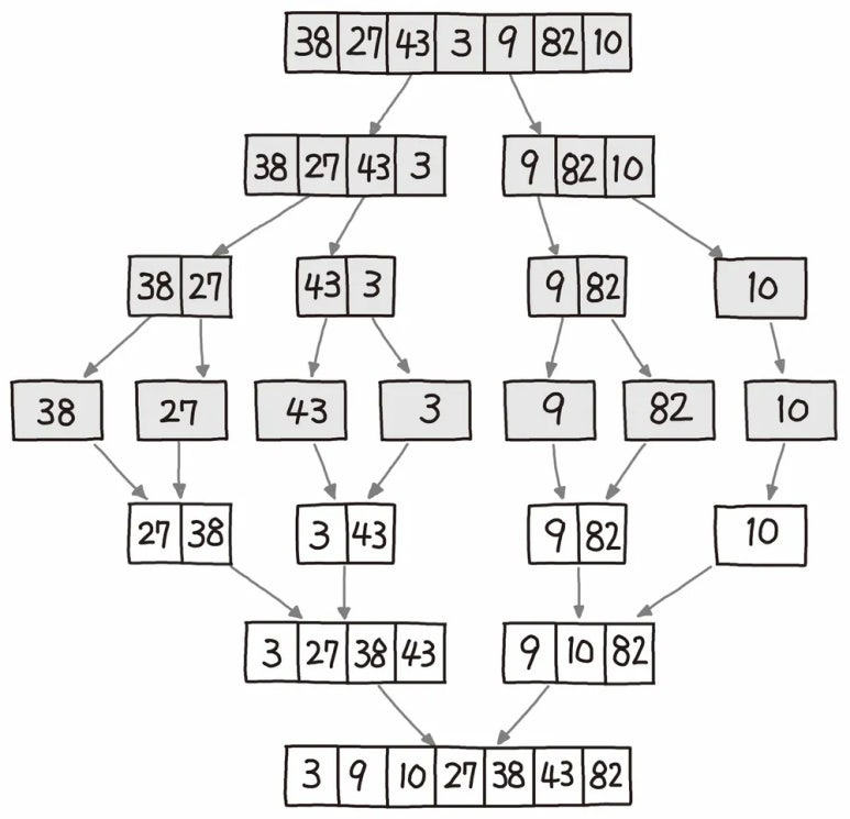 모든 부분 집합이 더 이상 나뉠 수 없을 때 최종 정렬 완료
