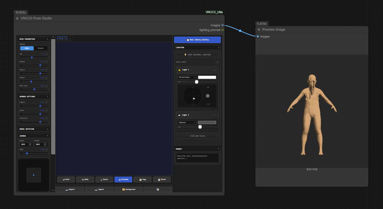사용자가 원하는 포즈와 조명을 마치 3D 그래픽 툴처럼 자유자재로 조절하여 완벽한 이미지를 생성할 수 있는 혁신적인 도구인 VNCCS Pose Studio에 대해 자세히 알아보겠습니다. 기존의 프롬프트 입력 방식만으로는 한계가 있었던 구도와 빛의 연출을 어떻게 직관적으로 해결할 수 있는지 단계별로 정리해 드립니다.