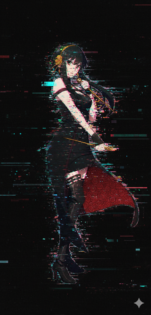 영문 프롬프트 예시: glitch pop art style, RGB color split effect, digital distortion, vibrant cyan and magenta highlights, cybernetic aesthetic.