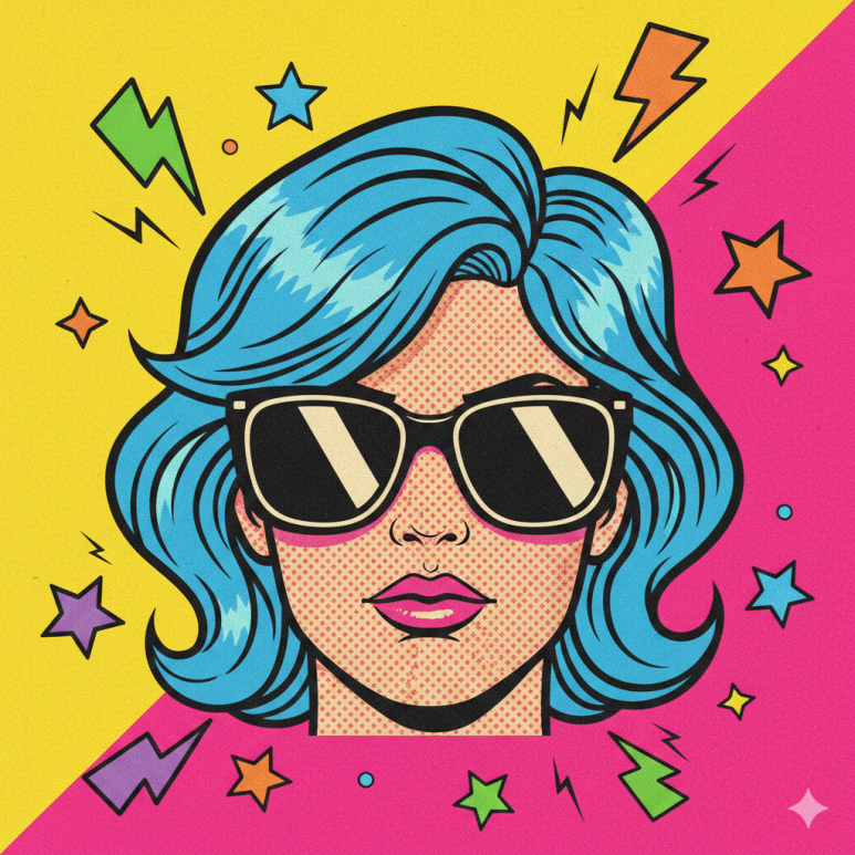 영문 프롬프트 예시: retro pop art style, Ben-Day dots texture, bold comic book outlines, vibrant primary colors.