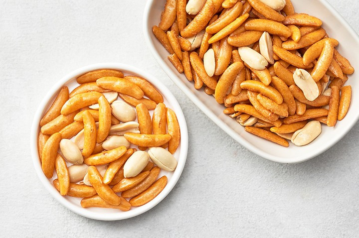 이마이 씨는 훌륭한 장인이었지만 철저한 사업가는 아니었습니다. 그는 이 획기적인 과자의 제조법을 주변 사람들에게 아낌없이 공유했고, 상표 등록조차 하지 않았습니다. 결국 카키노타네는 특정 브랜드의 이름이 아닌, 누구나 사용할 수 있는 일반 명사가 되어 시장에 퍼져 나갔습니다. 이 틈을 타 시장의 판도를 바꾼 것이 바로 후발 주자인 카메다 제과였습니다. 1966년 카메다 제과는 원조의 찹쌀 대신 가벼운 맵쌀을 사용해 식감을 더욱 가볍게 개선했고, 결정적으로 여기에 땅콩을 섞는 신의 한 수를 던졌습니다.